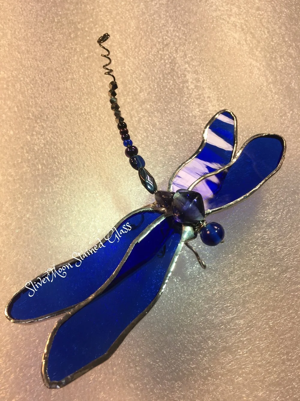 You can choose the size, color glass, and beads. You can also decide if you prefer the standing dragonflies or the flying dragonflies.